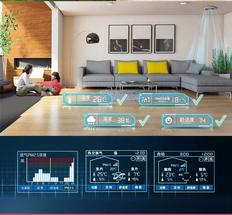 内置静止热交换器,能量回收效率达70%以上,冷热负荷不受新风影响,实现高效节能。