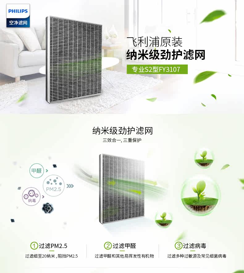 [飞利浦上游专卖店净化,加湿抽湿机配件]飞利浦空气净化器滤网FY3107原装月销量11件仅售399元