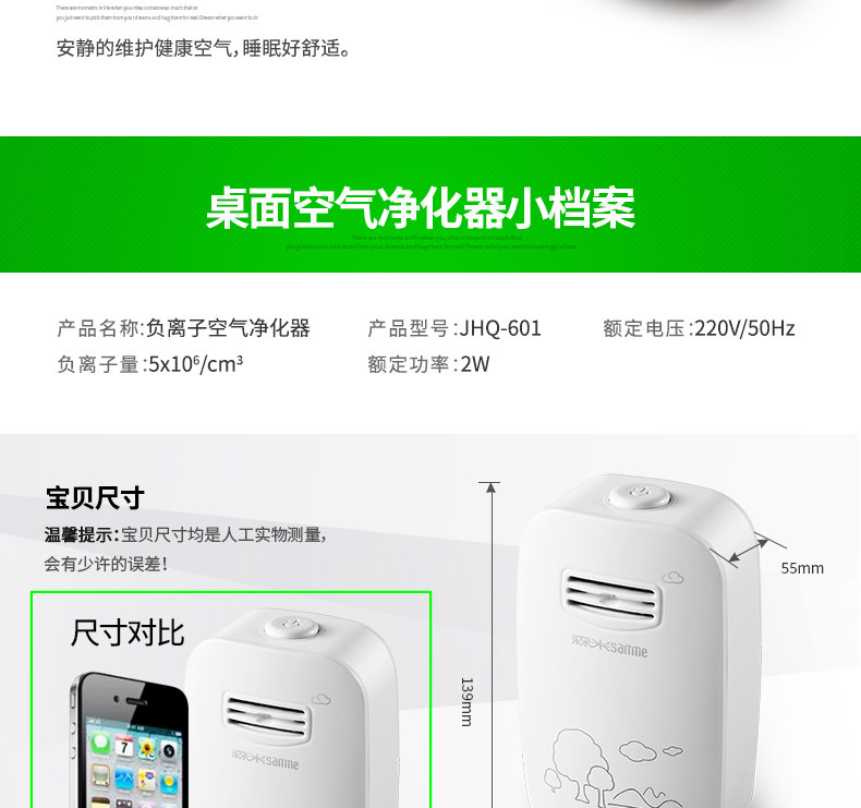 宝贝买过来一直开着,觉得空气很好,呼吸也顺畅了,在这个污染的时代,想活着就得用空气净化器,否则,身体会出毛病滴,你还在犹豫吗??你还在徘徊吗??你不想呼吸在大山里一样的空气????你要是犹豫徘徊等于我的好评白说,你自己看着办吧,严重声明,本人不是拖,你要是误以为我是拖,那是你糊涂,切……