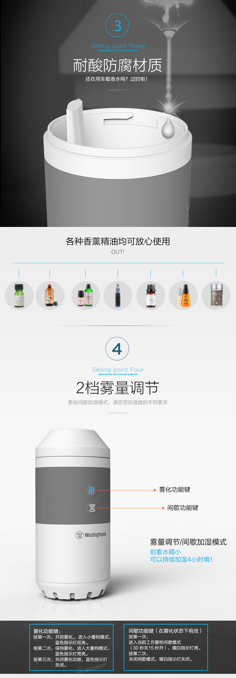 [西屋海博永信专卖店加湿器]西屋SC160车载加湿器迷你香薰汽车月销量5件仅售279元
