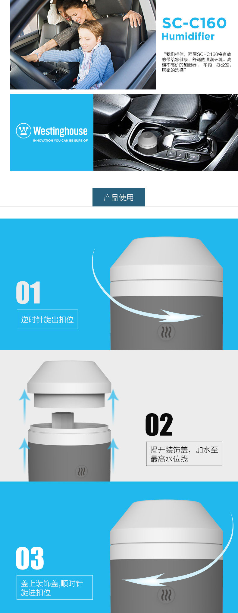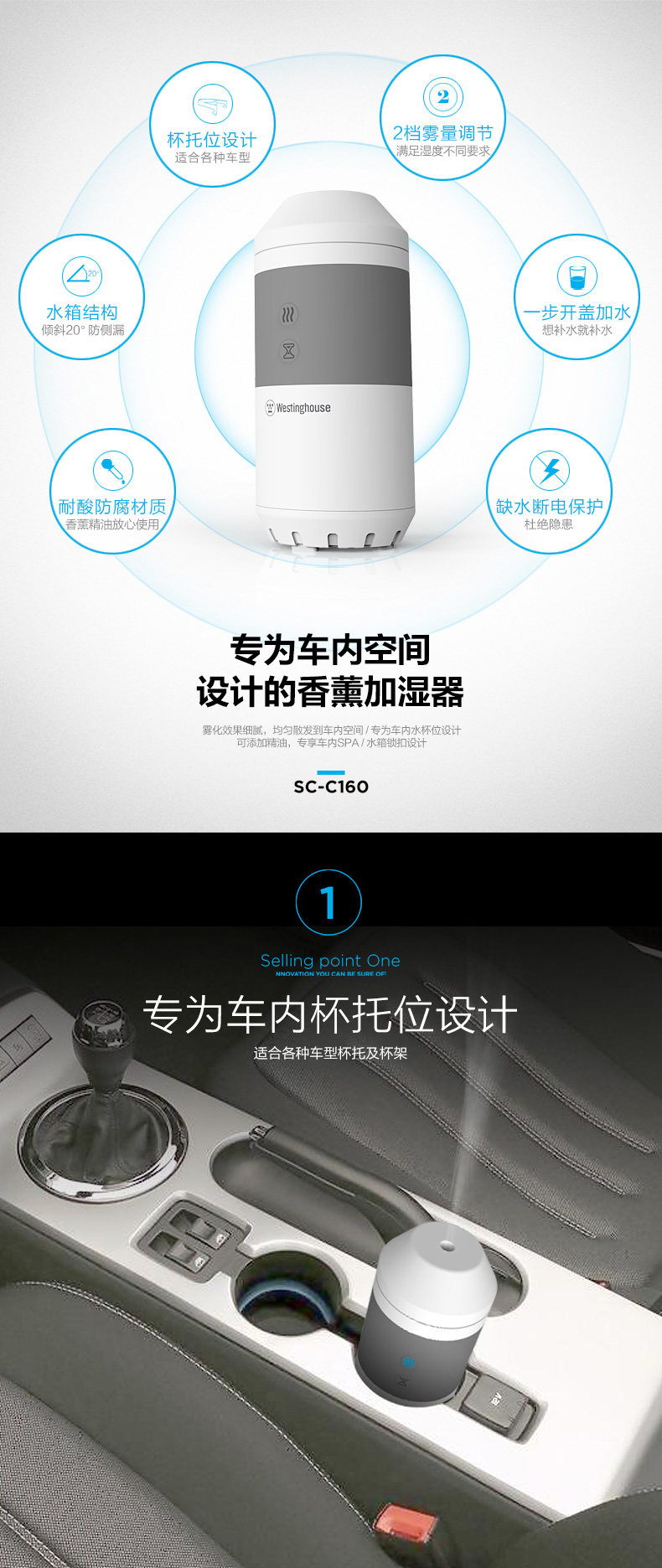 西屋SC160车载加湿器迷你香薰汽车迷你香薰机车用空气净化器雾化