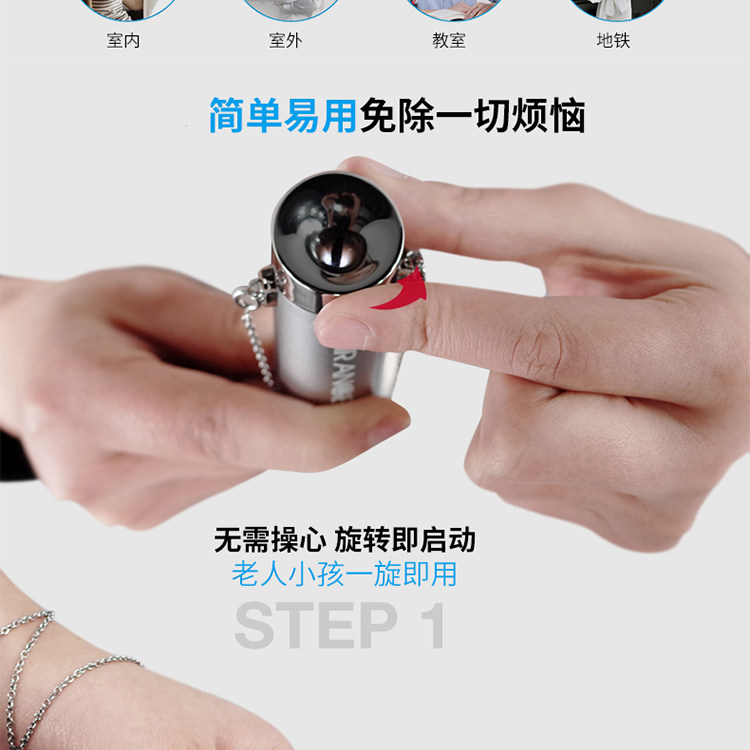 1.独特的外观设计、迷你可穿戴空气净化器;2. 静音技术;3. 体积小,内置锂电池,可用USB线反复充电,随身携带方便。