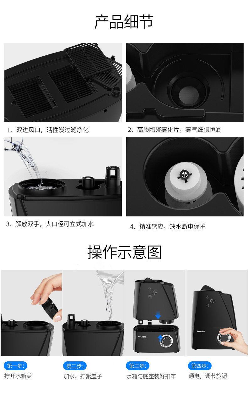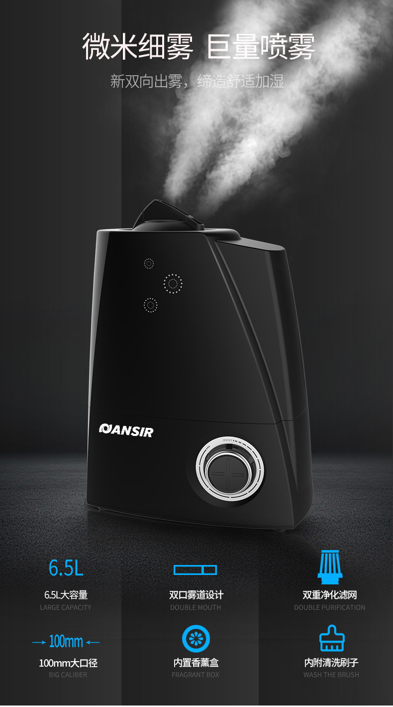 (82)[伟盛电器商城加湿器]空气加湿器家用静音卧室除螨杀菌大雾量月销量99件仅售288元