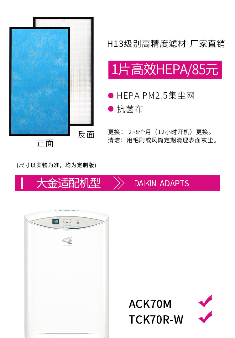 适配大金空气净化器过滤网ACK70M/ TCK70R-W高效HEPA