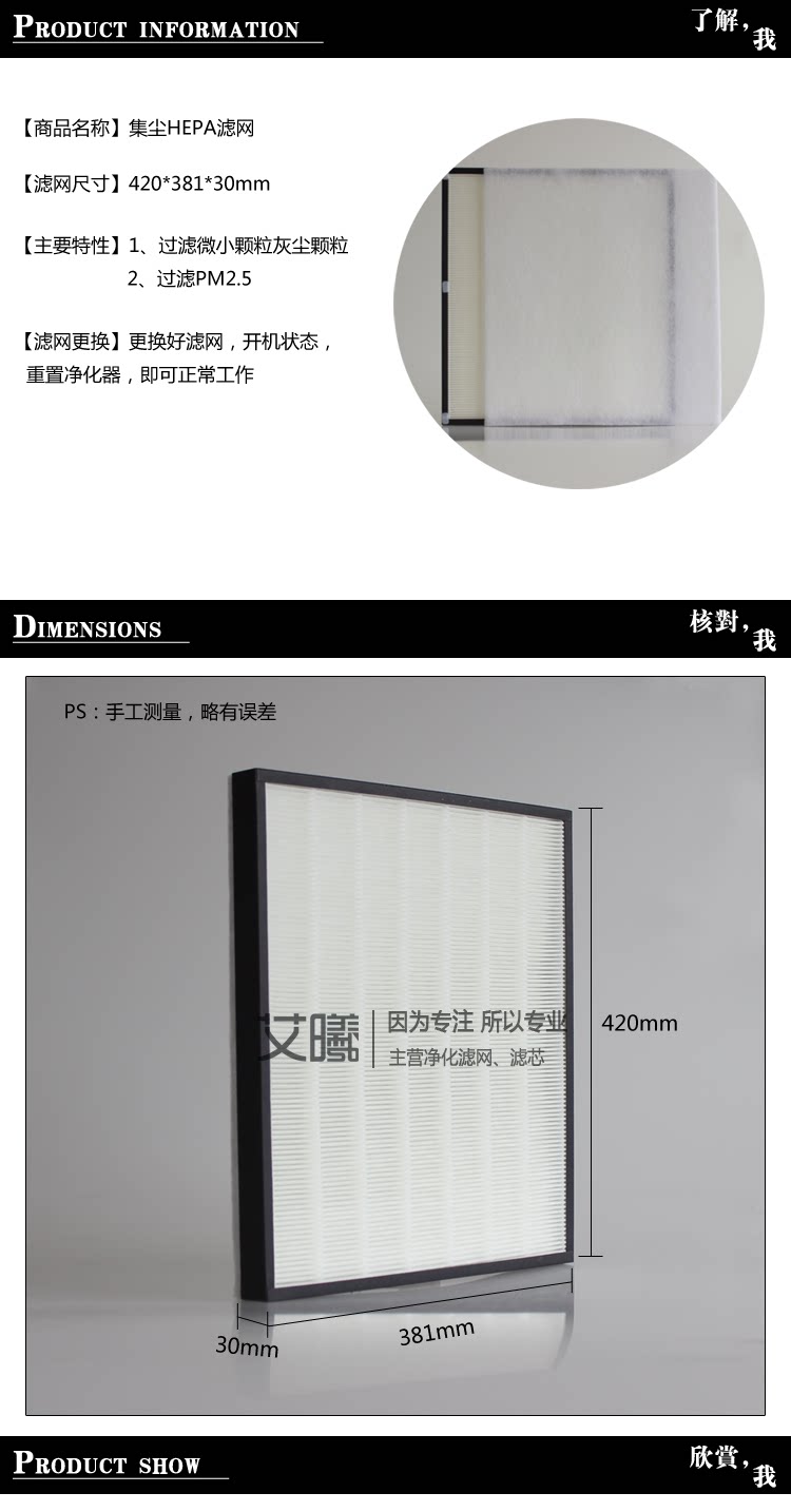 集尘HEPA滤网:420*380*30