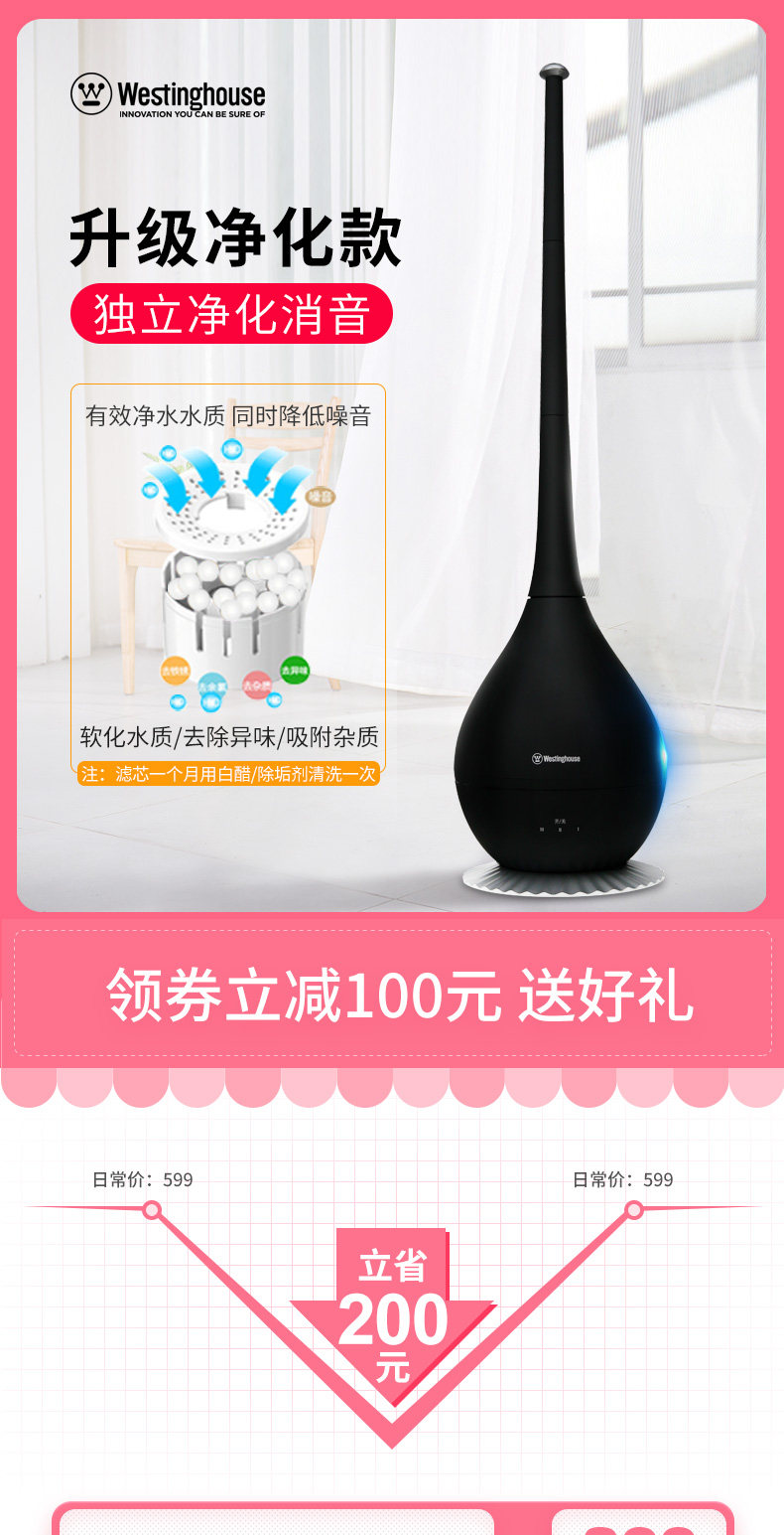 (82)[伟盛电器商城加湿器]空气加湿器家用静音卧室除螨杀菌大雾量月销量99件仅售288元
