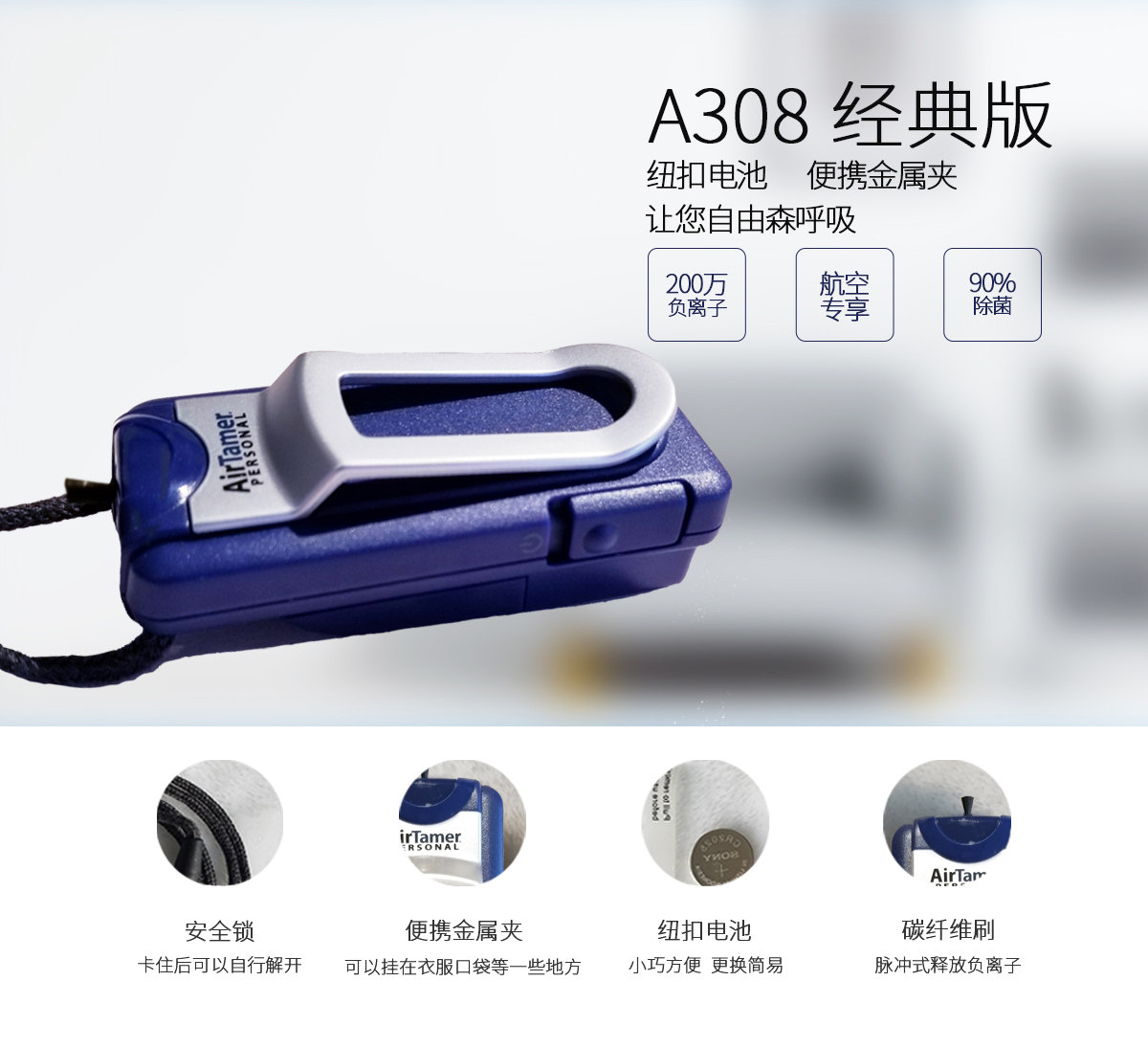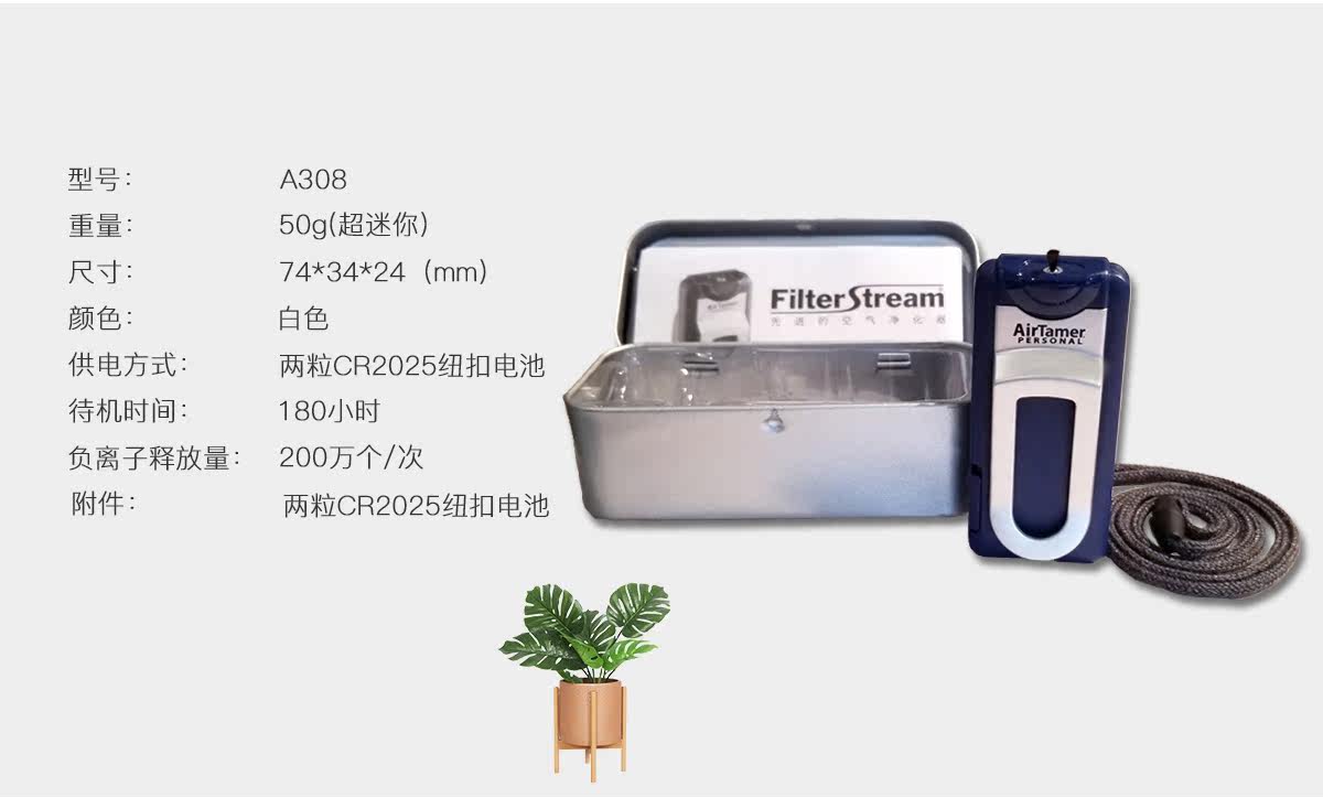 美国爱塔梅尔便携式随身携带空气净化器负离子挂脖式儿防雾霾A308