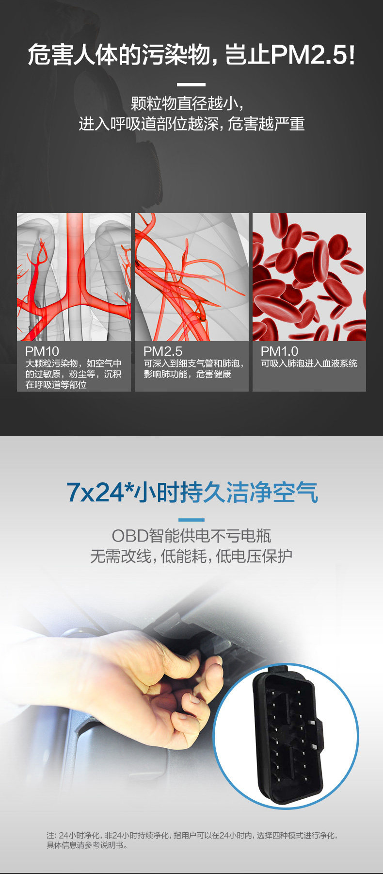 我是新车主,用上以后亮绿灯,坐车里感觉味挺重的,不知道有没有用,过段时间再行评价!