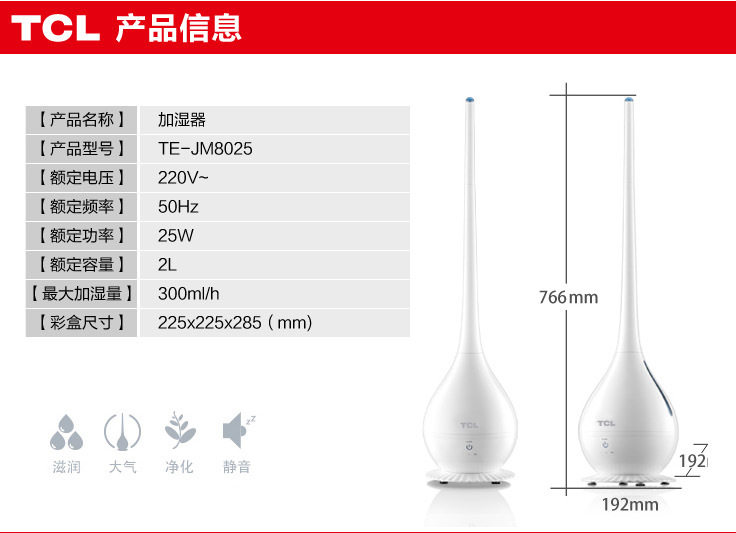 [百客生活网超加湿器]TCL雅典娜加湿器TE-JM8025月销量0件仅售138元