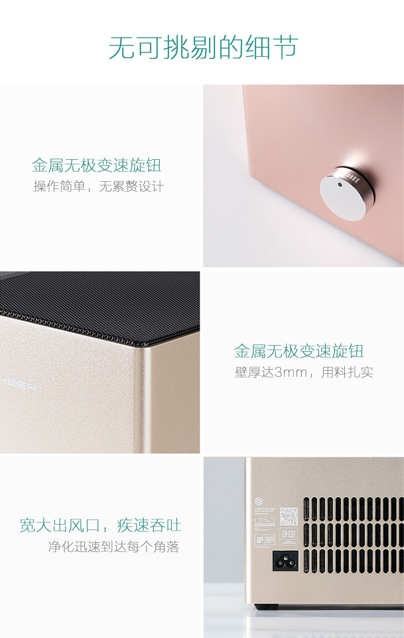 净化器收到了,电机是静音的,风量也还比较大,里面的滤芯密封也很严实,做工非常好,很满意,这回不怕甲醛闹事了,卧室治理甲醛我就靠T20了。还有客服态度非常好,很满意的一次购物!