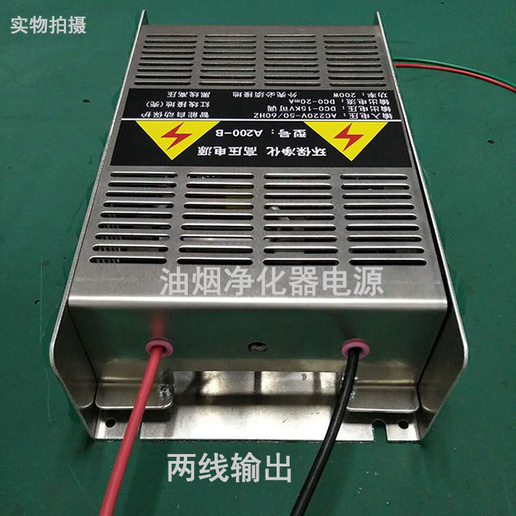 现货 本款电源对空气、 油烟、废气起着净化作用。适用于烧烤炉、餐饮业油烟净化器。该产品具有过流 过压 过温的保护作用。结合电场及其它设备可以任意进行高、中、低压调试,以达到最佳油烟净化效果。电源设有故障装置报警系统,便于故障检查。同时安装自动散热装置,提高产品质量。产品质保一年