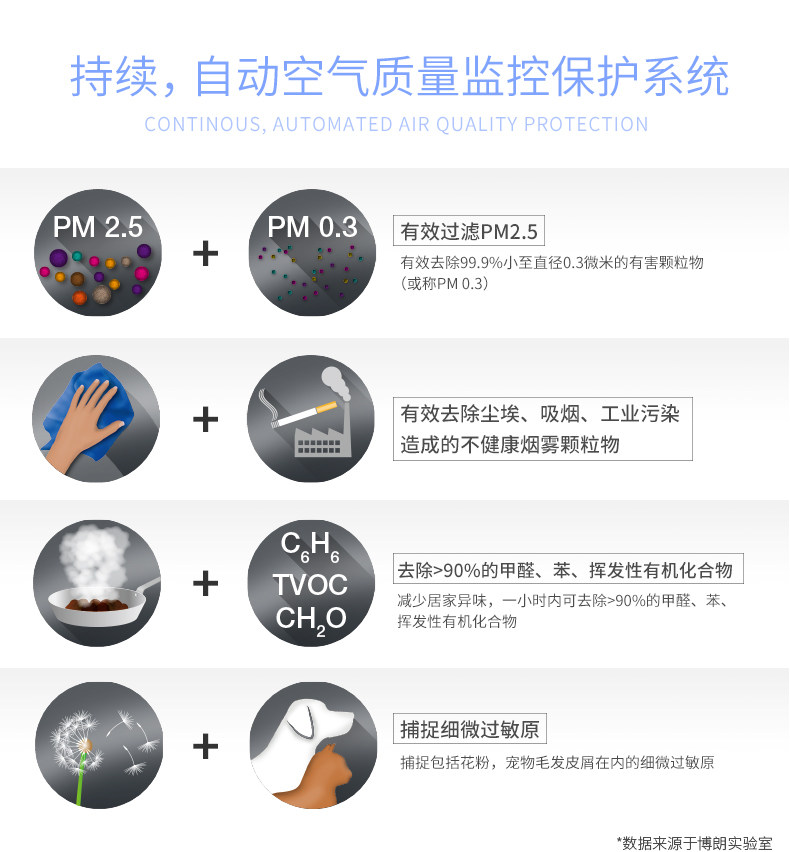 • 功能:定时除VOC除花粉除颗粒物除甲醛除烟除尘除雾霾除菌, 负离子除菌