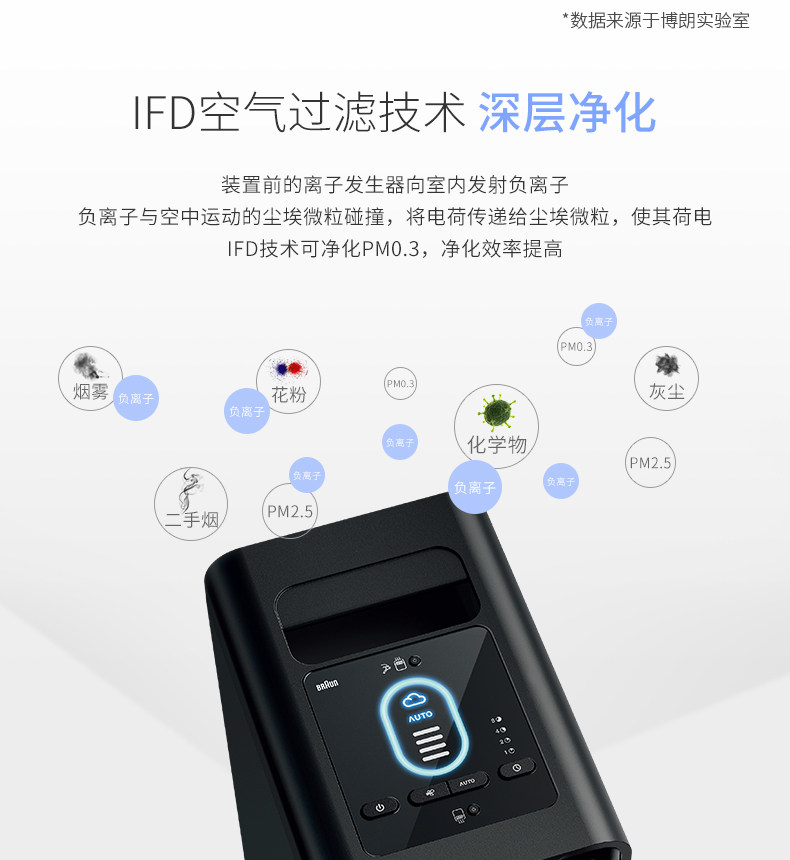 博朗AC7031BK 负离子空气净化器家用除甲醛雾霾异味PM2.5办公室