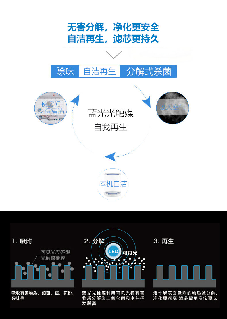 • 工作原理:活性炭 HEPA技术 光触媒 其他