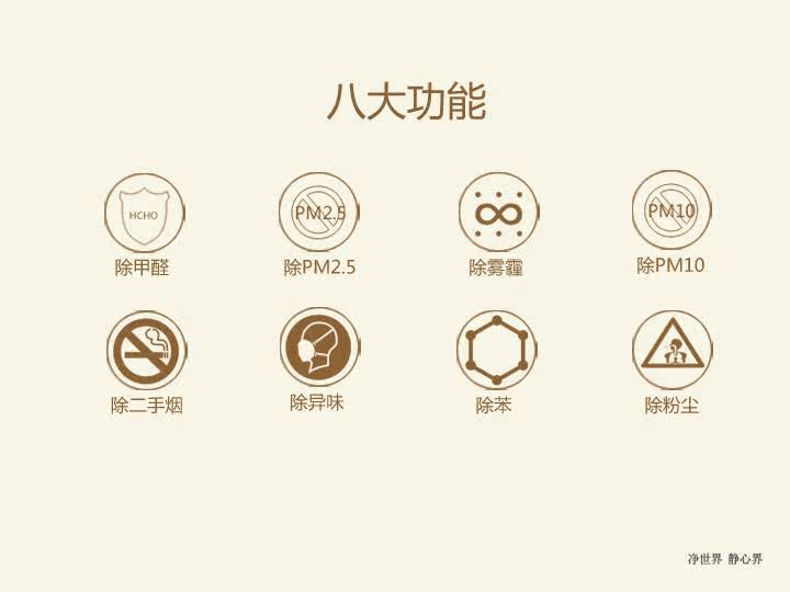• 功能:消除异味 过滤灰尘 杀菌 吸收TVOC气体 芳香功能
