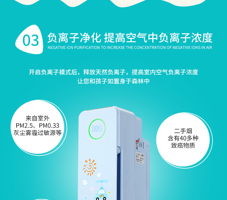 零动负离子空气净化器儿童款家用除甲醛雾霾去除PM2.5室内落地式