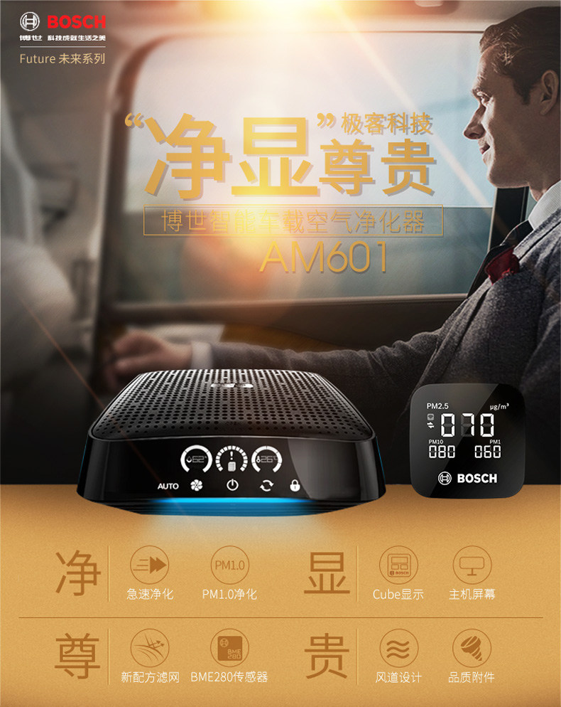 博世车载空气净化器车内消除异味汽车除甲醛车用除味器新车AM601