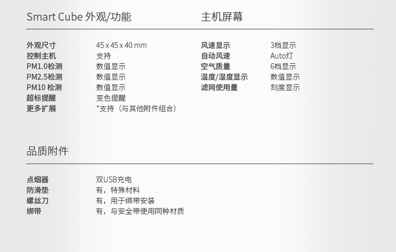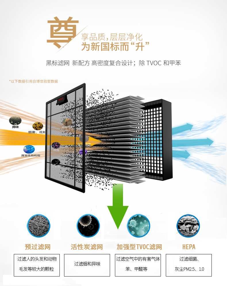 • 功能:消除异味过滤灰尘杀菌吸收TVOC气体
