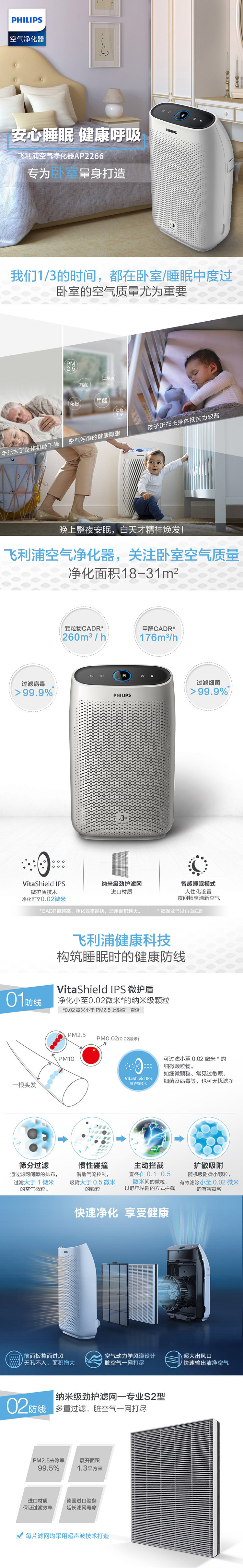 【直营】飞利浦(PHILIPS)空气净化器 除甲醛除雾霾过敏原AP2266