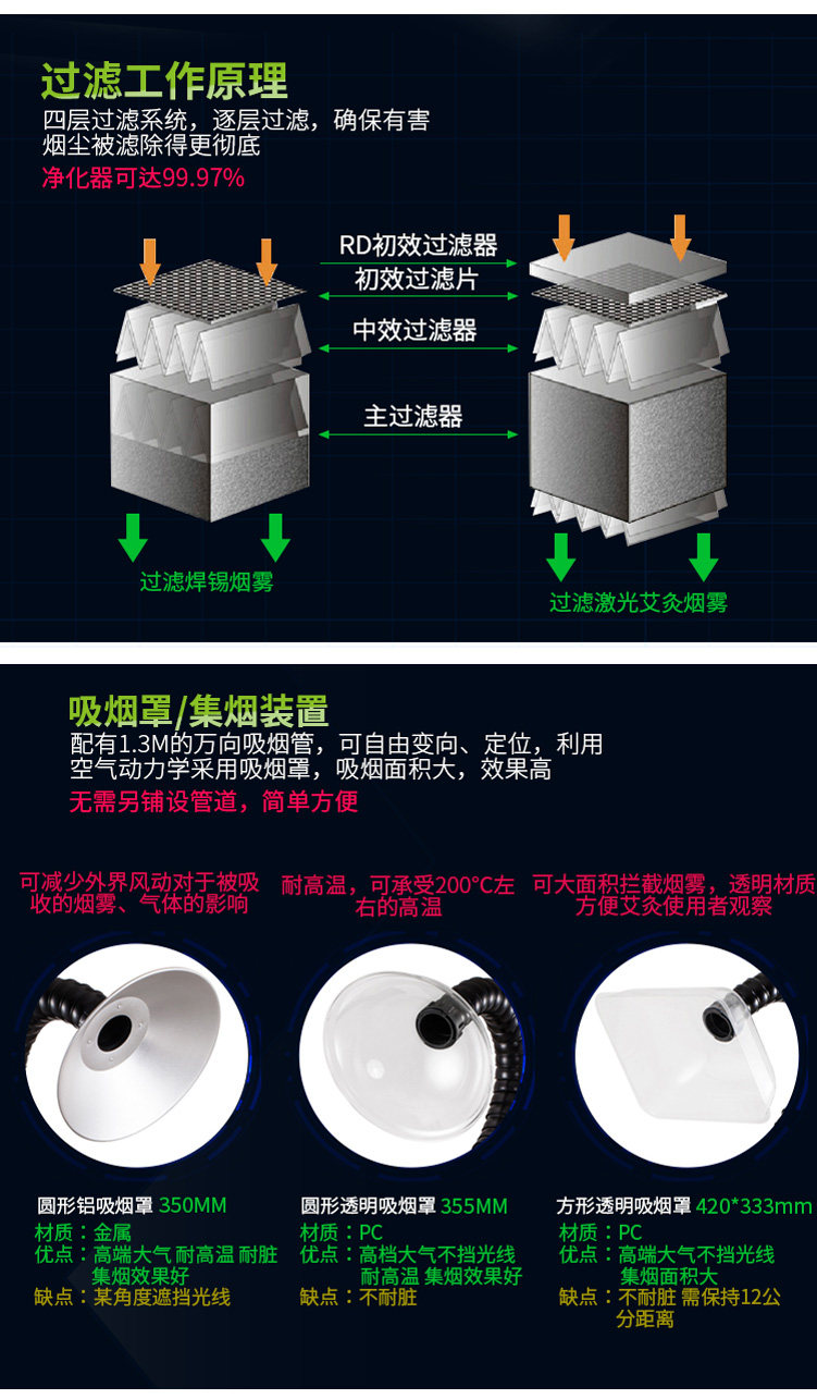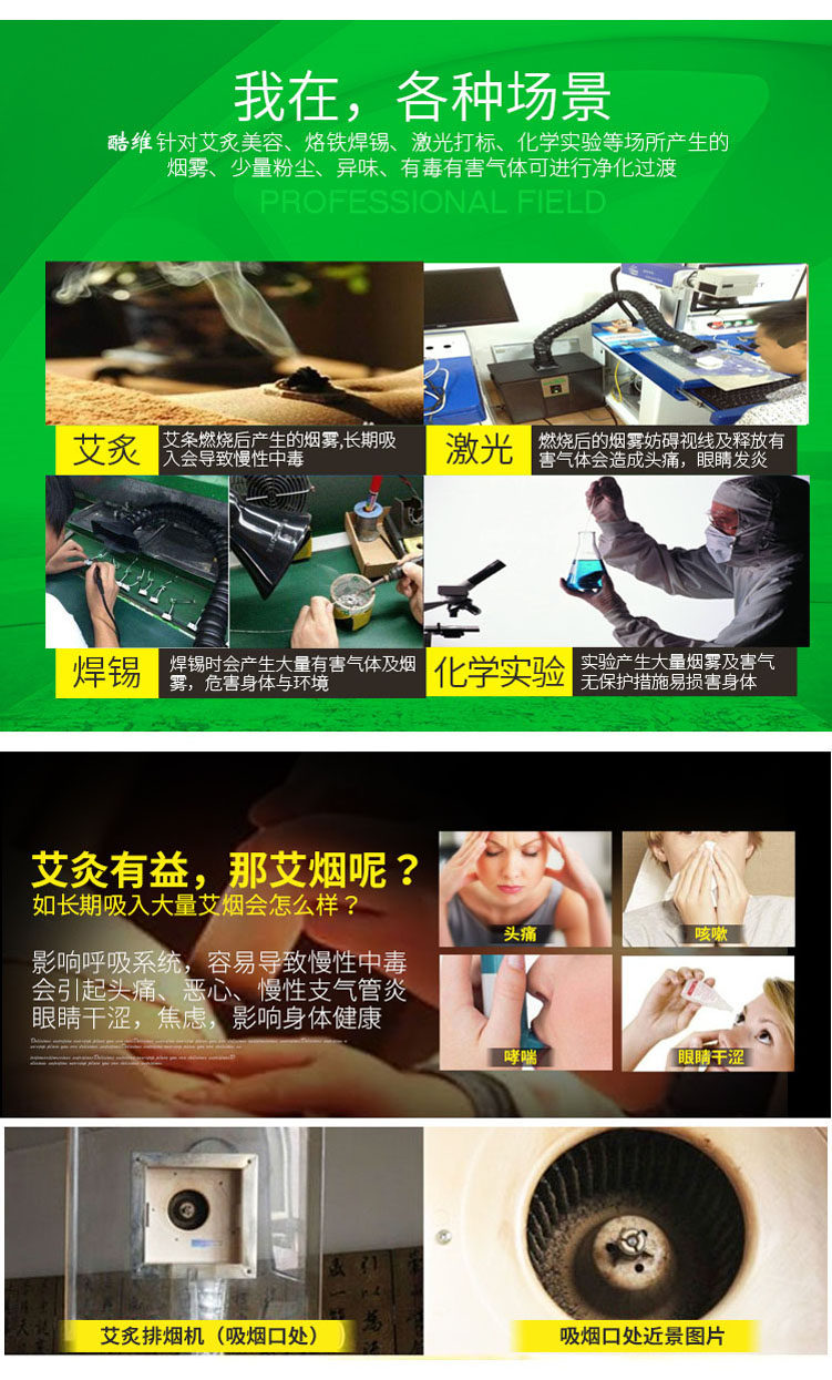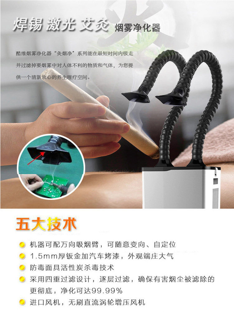 艾灸高效焊锡激光切割烙铁室内移动式排吸烟机空气烟雾净化过滤器