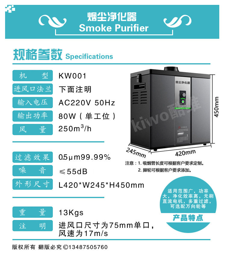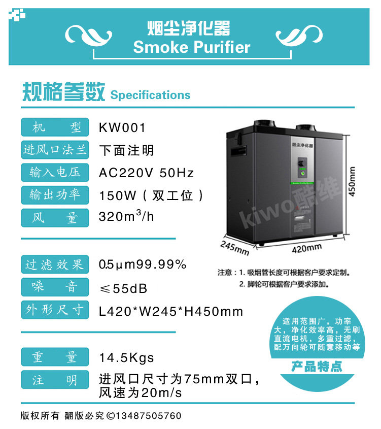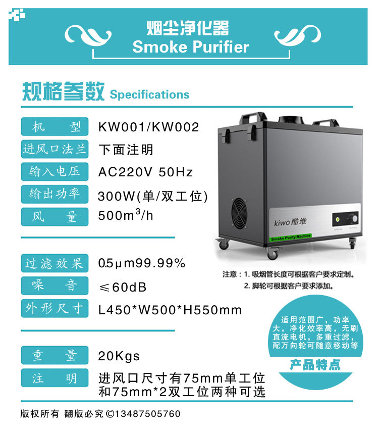 [酷维(Kiwo)环保净化器工厂店空气净化器]艾灸高效焊锡激光切割烙铁室内移动式排月销量0件仅售1690元