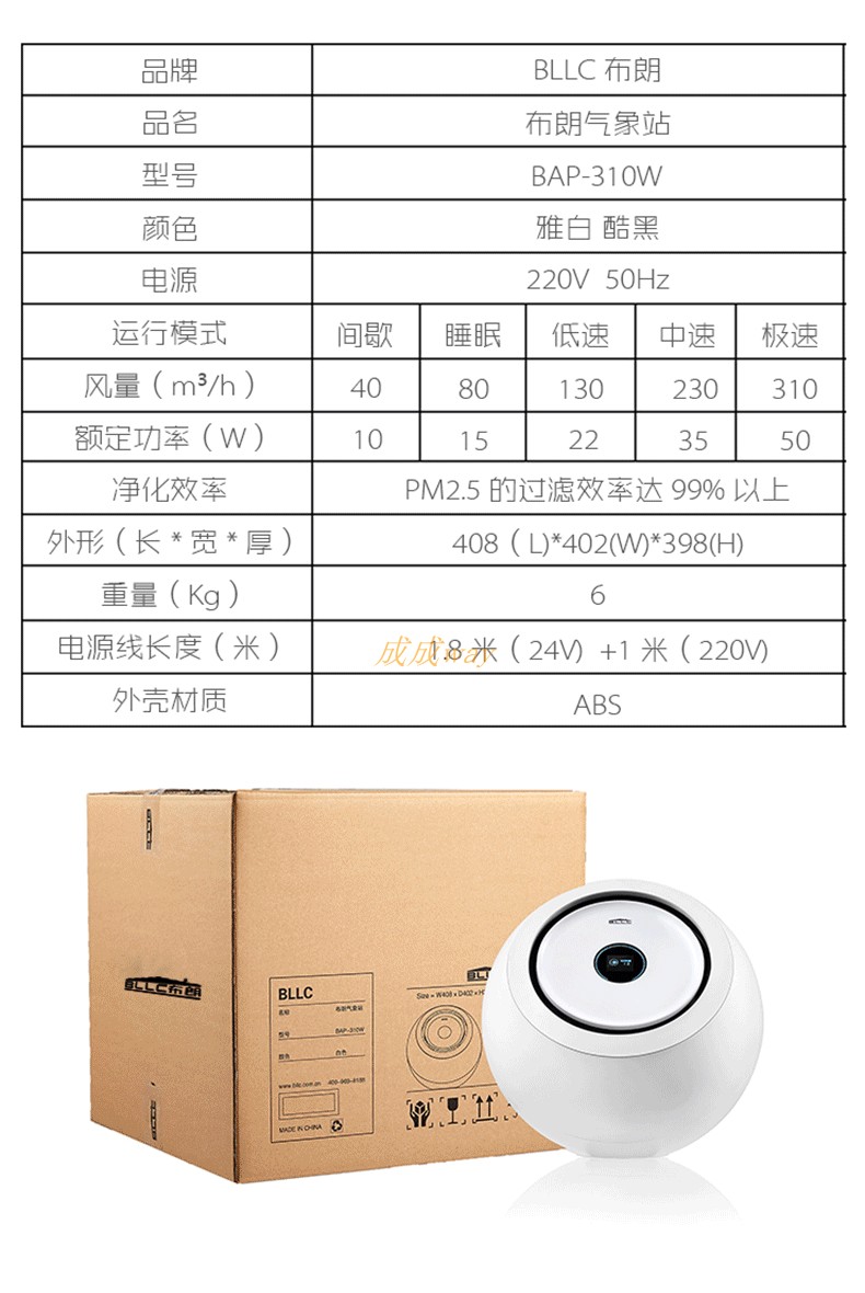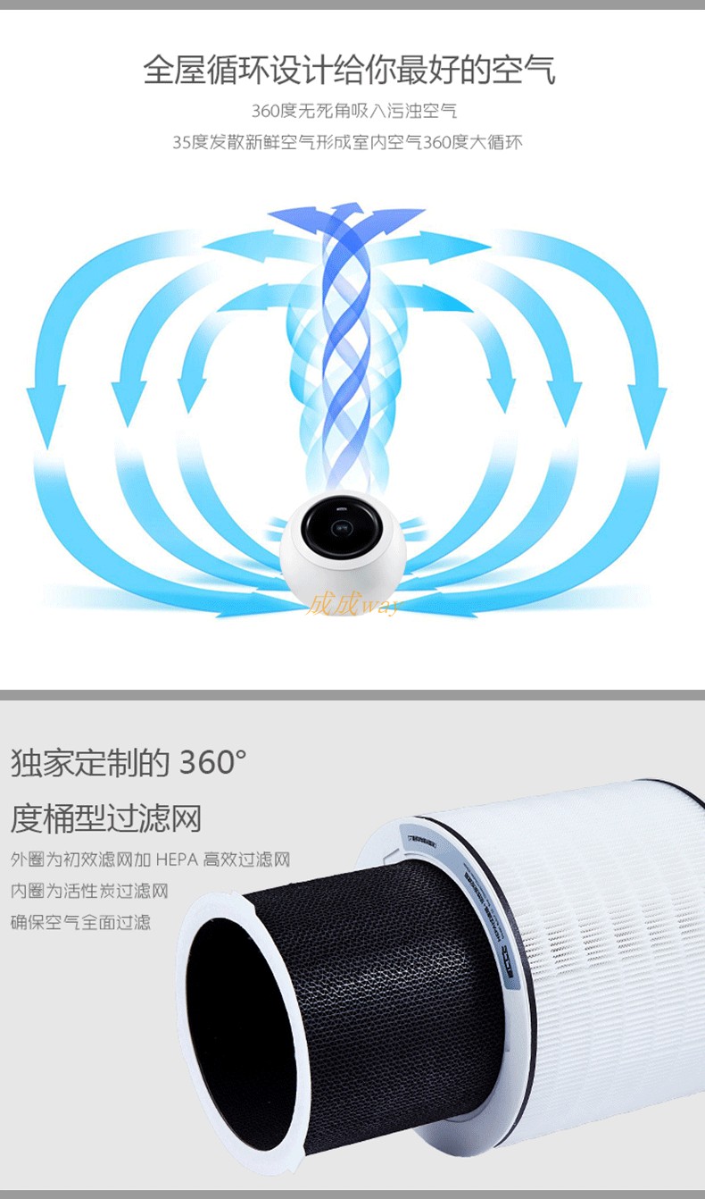 布朗新风气象站手机智能监控360度无死角大循环除PM2.5空气净化器