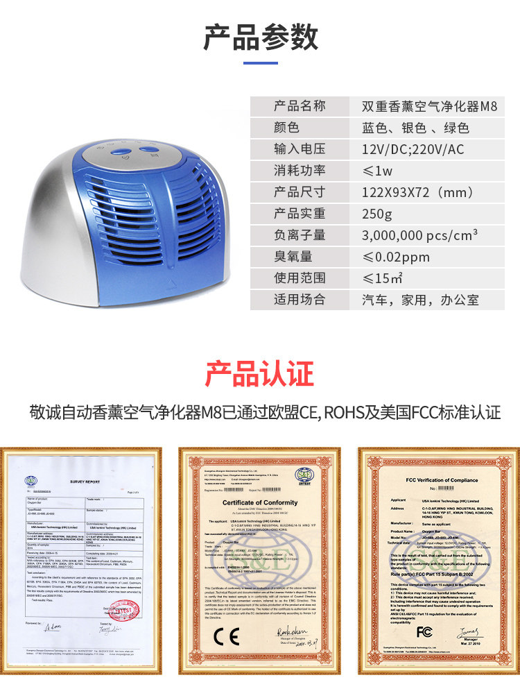 敬诚车载负离子空气净化器消除异味汽车内用扩香仪负离子香薰机