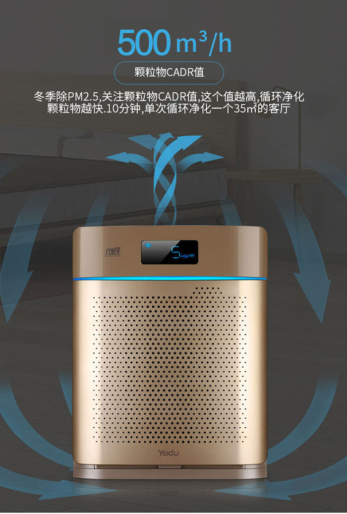 • 颗粒物CADR值:500立方米/小时