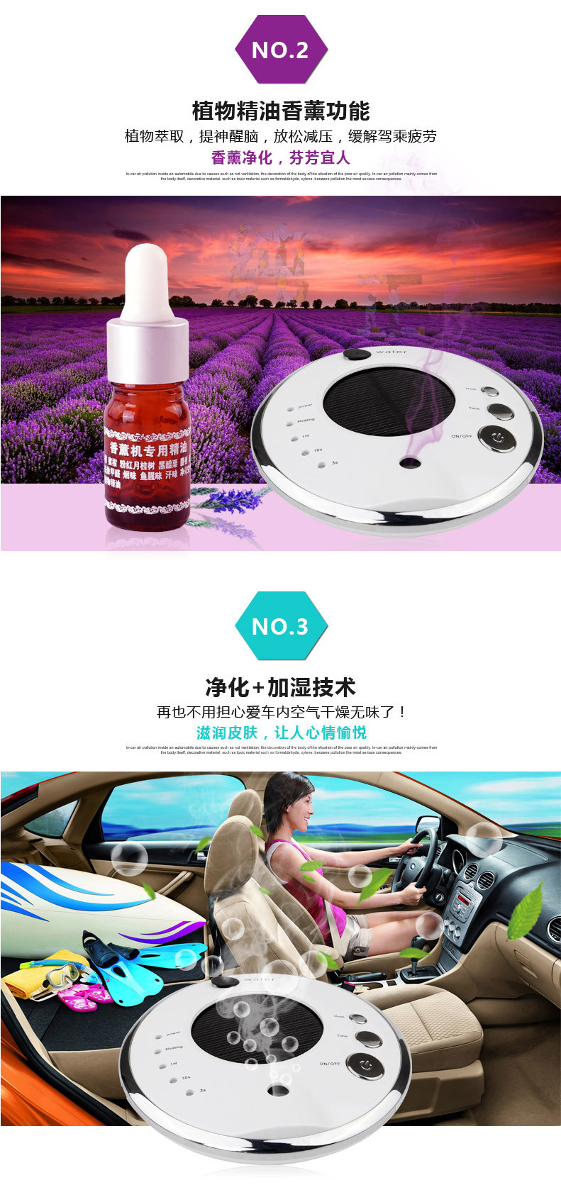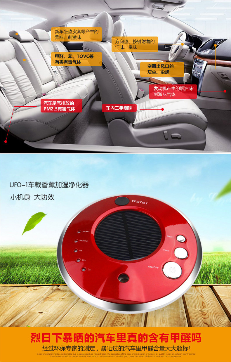 usb太阳能车载空气净化器车用加湿汽车氧吧超声波负离子香薰机